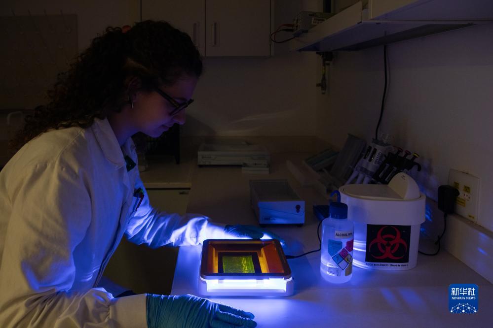 10月11日,一名科研人員在位于巴西圣保羅州克拉維紐斯的隆平巴西分子生物實驗室內工作。