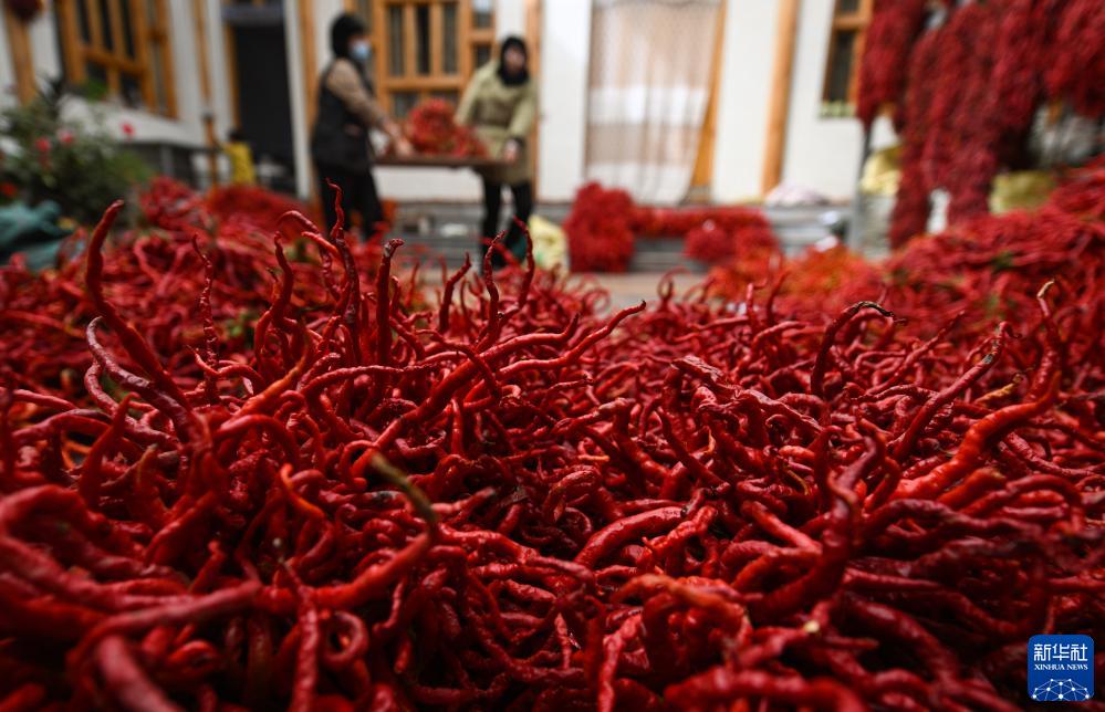 金秋時節,青海省海東市循化撒拉族自治縣在黃河兩岸種植的萬畝線辣椒迎來豐收,進入晾曬季。近年來,循化撒拉族自治縣依托高原地區冷涼氣候和黃河谷地優越的地理條件,大力發展線辣椒特色產業,促進農民增收,助力鄉村振興。