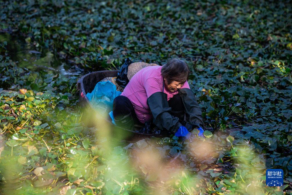 近期,浙江省湖州市吳興區東林鎮的蓮藕、菱角等水鄉特色農產品迎來豐收,農戶們趁著秋日好天氣進行采收。