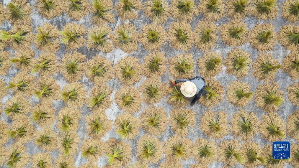 金秋時節,農民忙著收獲晾曬,豐收圖景美如畫。