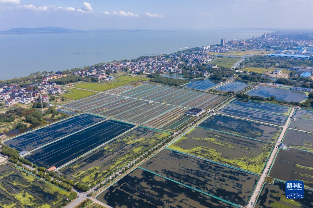 10月12日拍攝的位于太湖南岸的織里鎮太湖蟹養殖基地(無人機照片)。