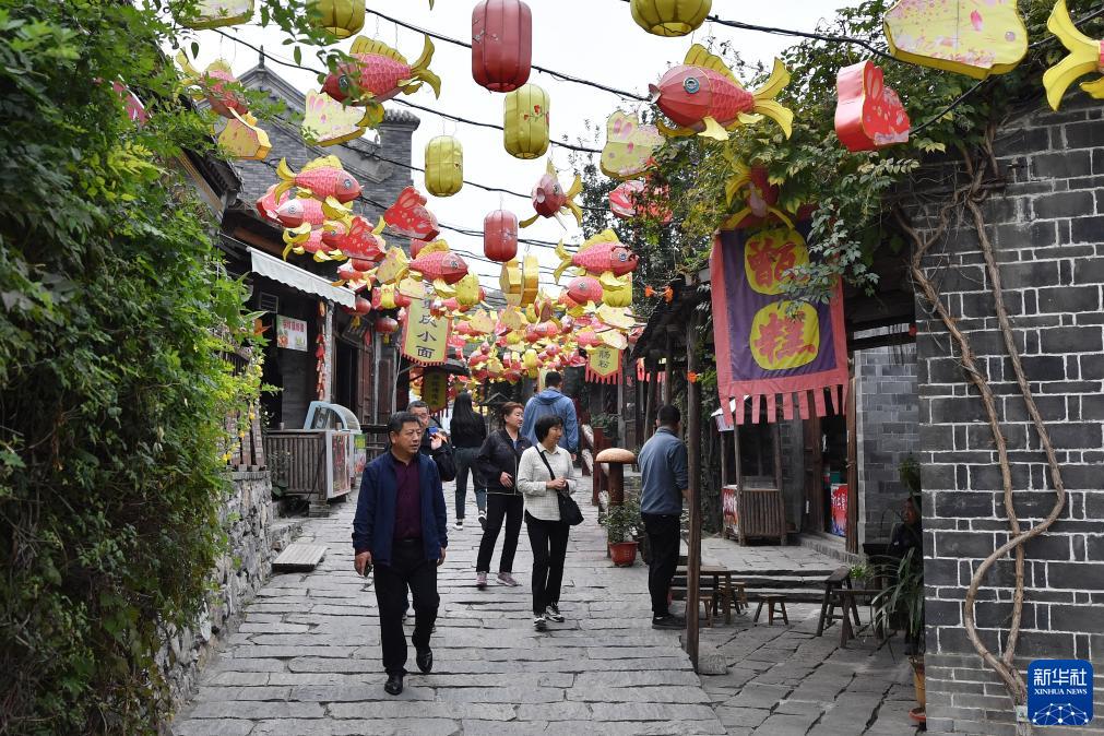 10月12日,游客在石家莊市鹿泉區土門關驛道小鎮參觀游玩。