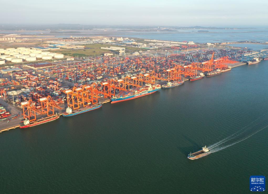 10月3日拍攝的欽州港碼頭(無人機照片)。