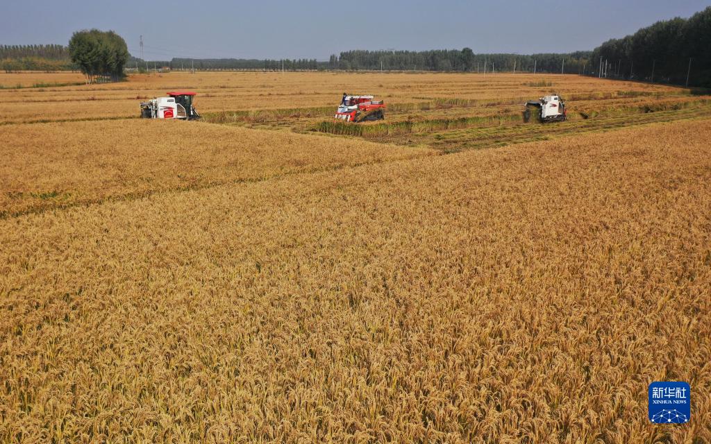 金秋時節,河北省唐山市的水稻迎來收獲季節,農民開始搶抓農時適時收獲,確保顆粒歸倉。
