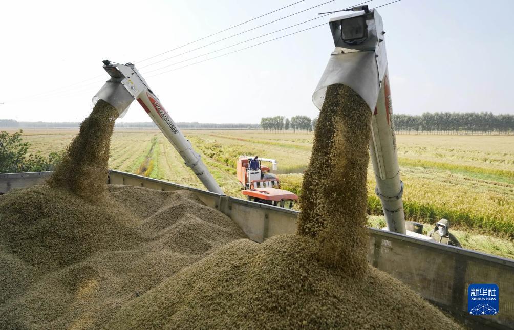 金秋時節,河北省唐山市的水稻迎來收獲季節,農民開始搶抓農時適時收獲,確保顆粒歸倉。