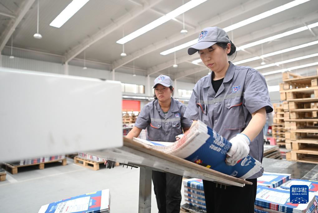 10月12日,河北元氏縣一家新材料生產企業工人在車間生產線上工作。