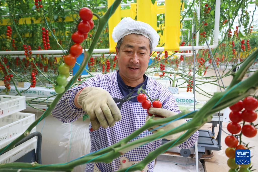 近日,在甘肅省平涼市崆峒區四十里鋪鎮的智能玻璃溫室里,采用基質吊架立體栽培系統等技術培育的串收番茄陸續成熟,務工人員忙著收獲、打包,準備進行銷售。近年來,平涼市著力發展設施蔬菜產業鏈,不僅為市場提供了高品質產品,還幫助群眾實現就近就業。