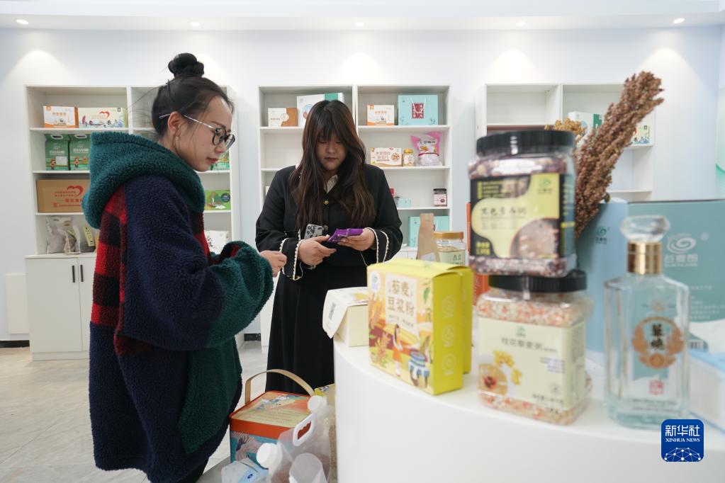 10月12日,在河北省沽源縣一家藜麥加工企業展廳,工作人員在向客商推介產品。