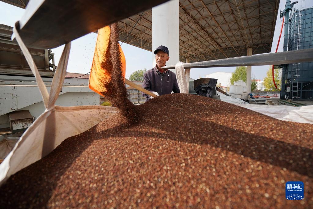10月12日,河北省沽源縣一家藜麥加工企業的工人在整理收獲的藜麥。