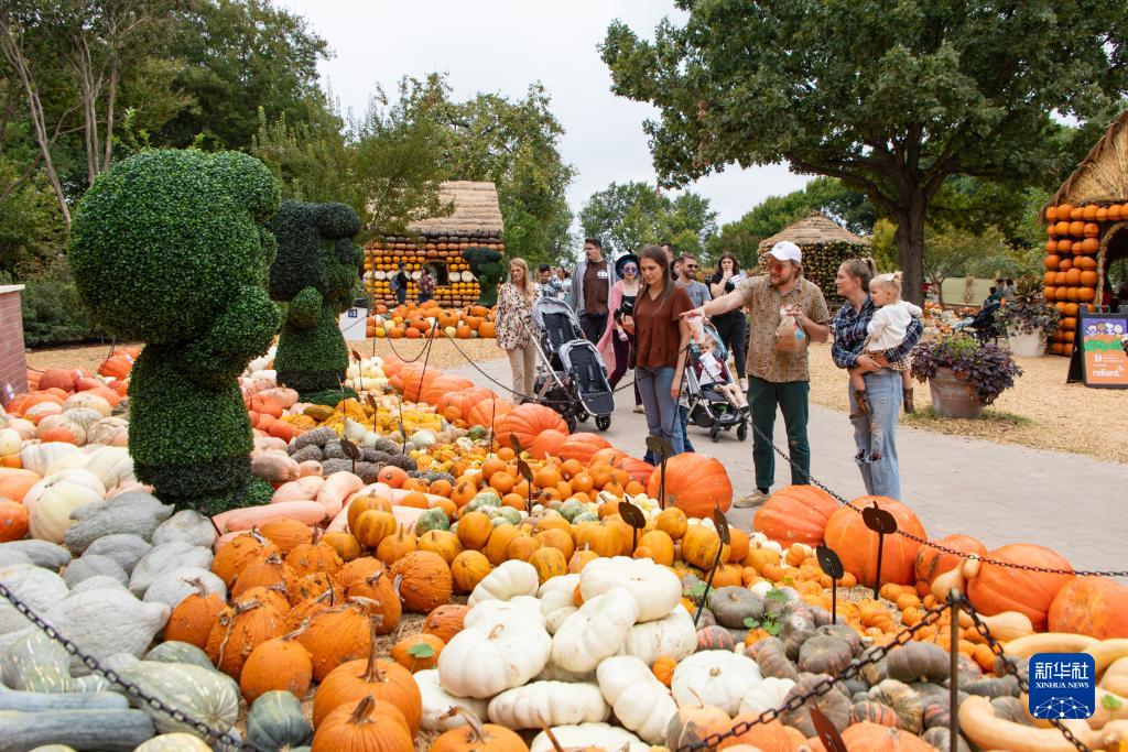 10月12日,游客參觀美國得克薩斯州達拉斯植物園的“南瓜小鎮”。