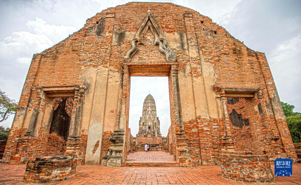 這是2022年4月18日在泰國大城拍攝的阿瑜陀耶古城遺址。大城府是泰國歷史悠久的古都,熱帶風光旖旎,文物古跡廟宇眾多,以豐富的旅游資源吸引各國游客。