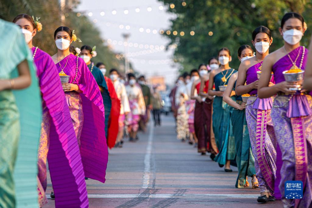 2022年4月13日,在泰國大城府,演員參加街頭巡游活動慶祝泰國傳統新年宋干節。