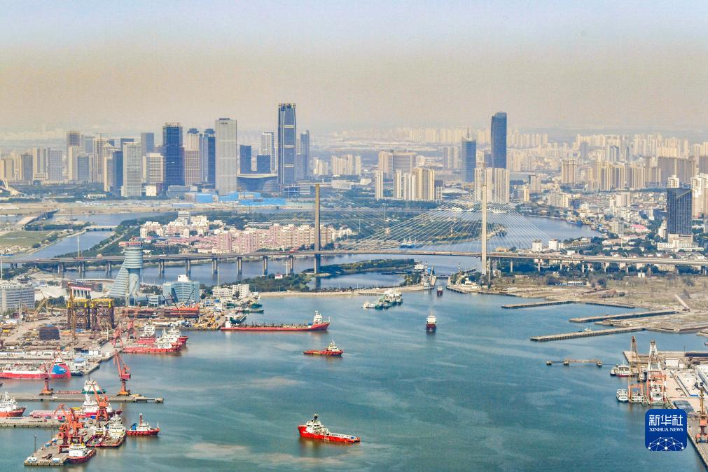 這是6月16日從直升機上拍攝的天津港主航道。天津港是京津冀地區的海上門戶,是世界等級最高的人工深水港,更是服務“一帶一路”倡議的重要節點。