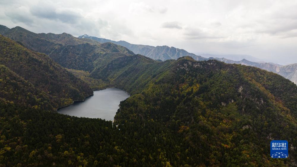 這是10月13日在青海省海東市循化撒拉族自治縣拍攝的孟達國家級自然保護區的孟達天池(無人機照片)。
