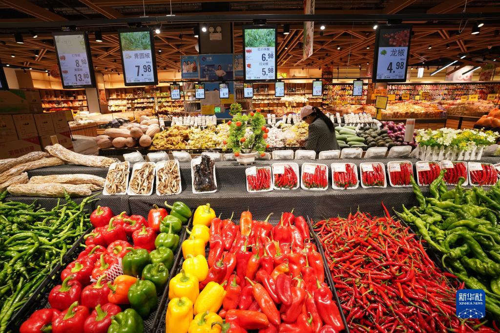 10月13日,顧客在湖南省懷化市通道侗族自治縣一家生活超市選購蔬菜。