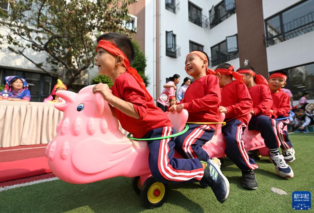 當日,天津市和平區第五幼兒園舉行秋季趣味運動會,通過旱地龍舟等具有特色的游戲項目,讓孩子們在運動中感受童趣與歡樂。