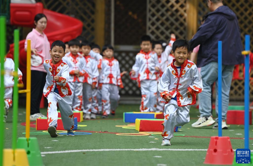 當日,天津市和平區第五幼兒園舉行秋季趣味運動會,通過旱地龍舟等具有特色的游戲項目,讓孩子們在運動中感受童趣與歡樂。