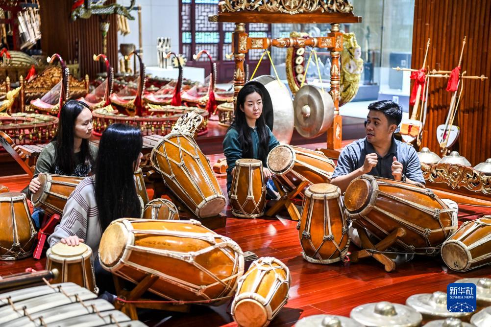 10月12日,在廣西藝術學院,仁迪(右一)給學生講解演奏知識。