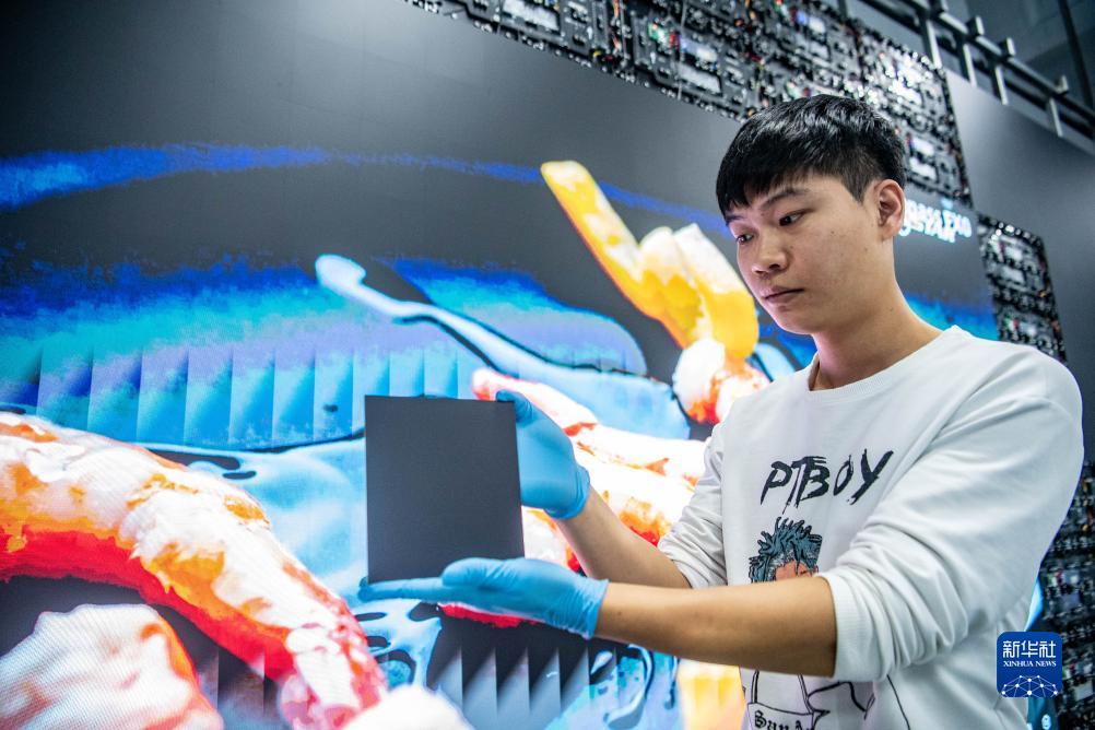 10月12日,在位于重慶市綦江高新區的新視通智能科技有限公司展示大廳內,工作人員在展示新產品。重慶綦江區在推進傳統產業數字化改造的同時,大力培育戰略性新興產業,以衛星制造和大數據應用為核心的新一代信息技術、新材料、裝備制造、節能環保、消費品工業五個新產業呈現集群化發展的良好態勢。