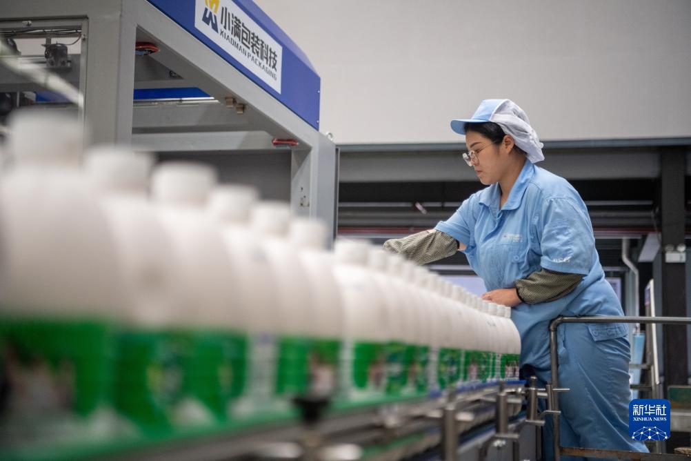 10月11日,在位于重慶市綦江區食品工業園的唯怡飲品有限公司生產車間內,工作人員在生產線上工作。重慶綦江區在推進傳統產業數字化改造的同時,大力培育戰略性新興產業,以衛星制造和大數據應用為核心的新一代信息技術、新材料、裝備制造、節能環保、消費品工業五個新產業呈現集群化發展的良好態勢。