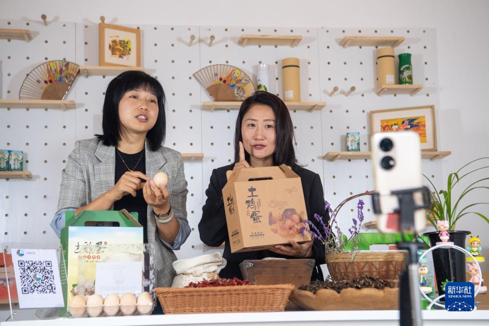 10月12日,在重慶市綦江區三角鎮紅巖村,村干部在“壩壩直播間”內通過網絡直播推介當地特色農產品。重慶綦江區近年來大力發展山地特色高效農業的同時,創新探索“直播+”模式,通過“鄉村振興壩壩直播間”,村干部、村民當起主播,推介民宿、土貨等,讓不少城里人慕名而來。