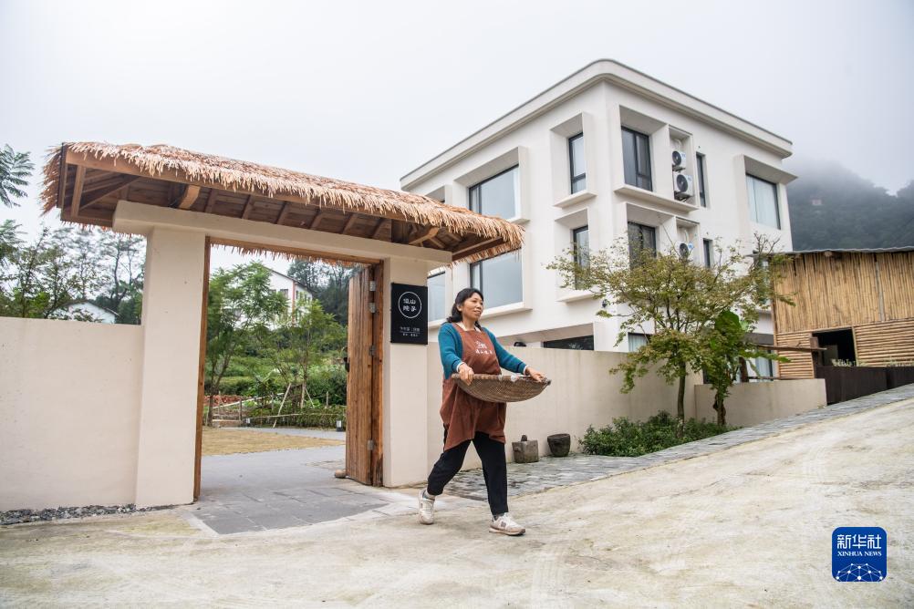 10月12日,在位于重慶市綦江區的三角鎮紅巖村,村民在整理收拾自家的“瀛山院子”民宿。重慶綦江區近年來大力發展山地特色高效農業的同時,創新探索“直播+”模式,通過“鄉村振興壩壩直播間”,村干部、村民當起主播,推介民宿、土貨等,讓不少城里人慕名而來。