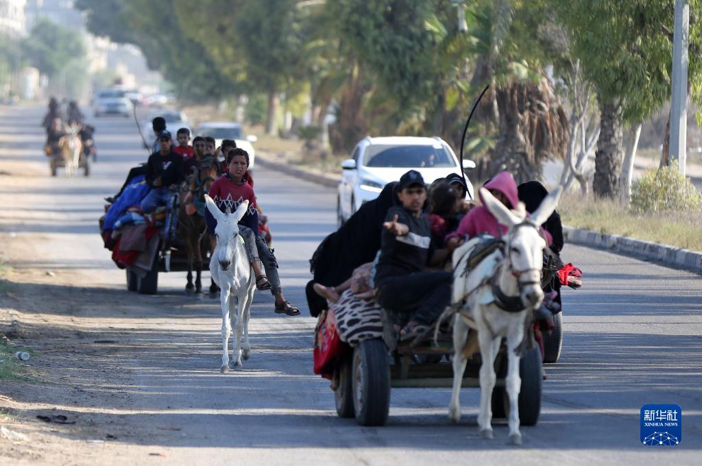 10月13日,在加沙地帶南部地區,人們逃離家園。