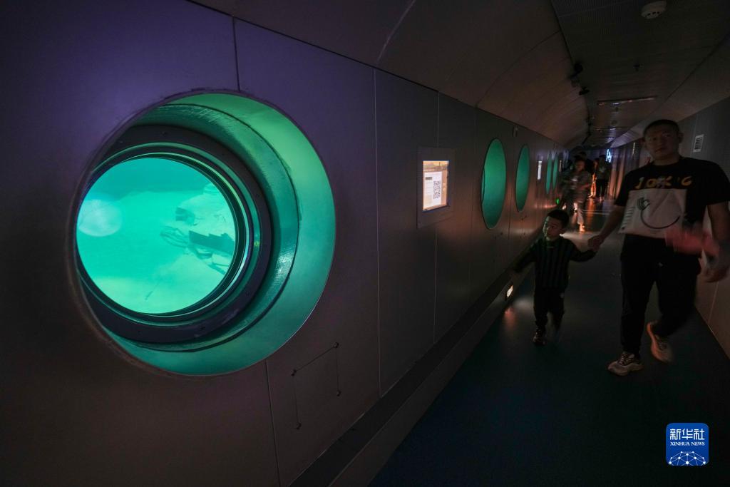 10月13日,游客在重慶涪陵白鶴梁水下博物館的水下參觀廊道內參觀。