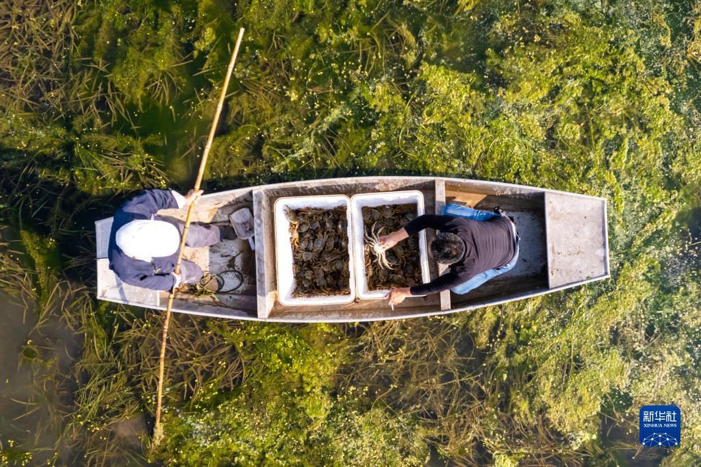 近日,洞庭湖養殖的螃蟹迎來了豐收季,湖南省益陽市大通湖管理區的蟹農正抓緊捕撈,供應各地市場。大通湖是洞庭湖的重要組成部分,水產資源豐富。