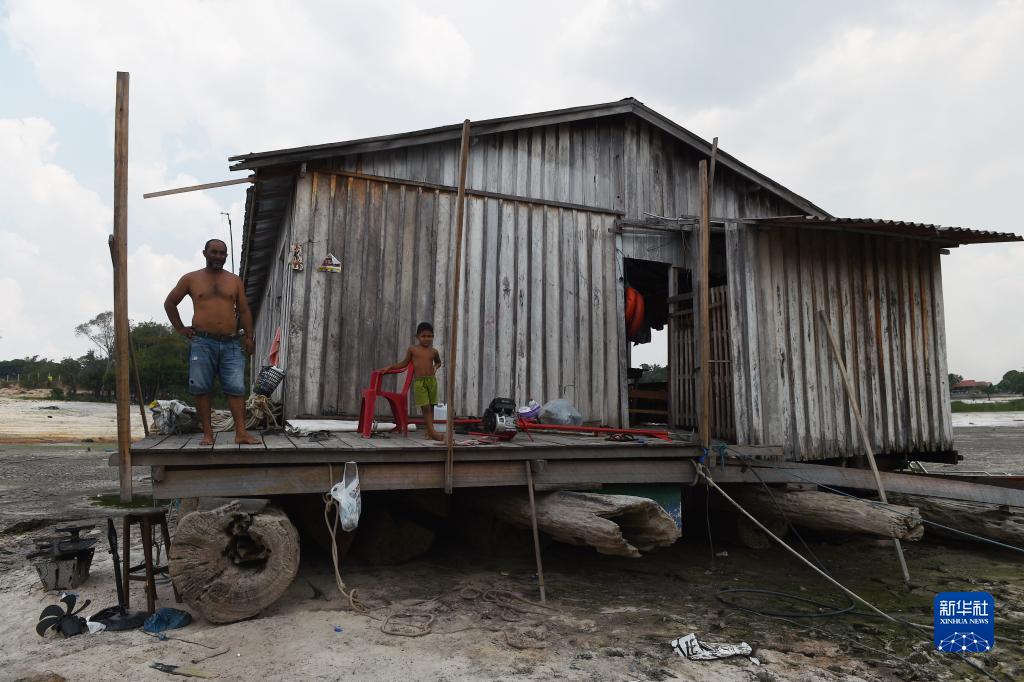 10月10日,在巴西亞馬孫州內格羅河支流塔魯曼河河畔,居民站在自家船屋門前。