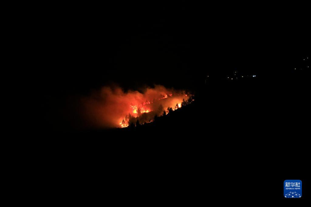 這張10月13日在黎巴嫩南部城鎮邁爾凱巴拍攝的照片顯示,以色列北部米斯加夫阿姆地區一處以軍軍事用地附近在黎以交火中起火。