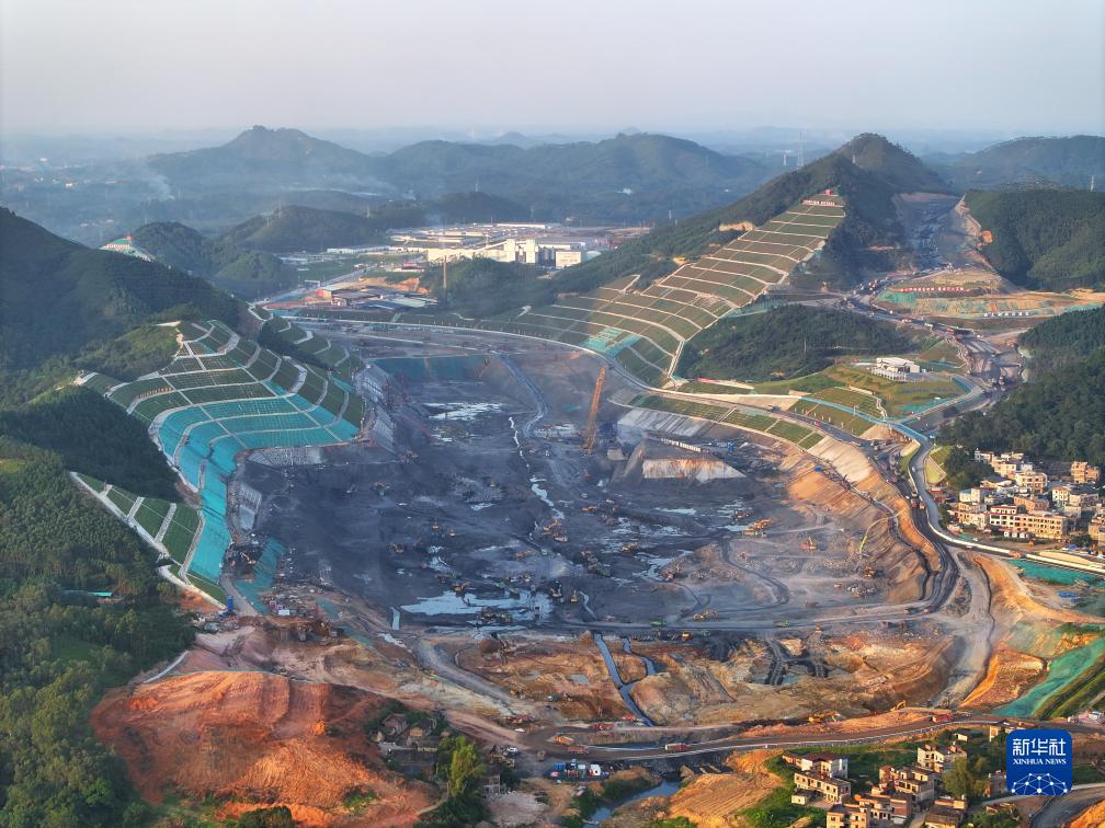 平陸運河馬道樞紐建設現場(10月4日攝,無人機照片)。