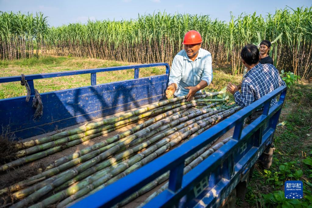 近日,地處洞庭湖畔的湖南省益陽市南縣烏嘴鄉港口村種植的甘蔗豐收。近年來,港口村因地制宜發動村民種植甘蔗。目前,當地甘蔗種植戶達270戶,甘蔗種植總面積近1000畝,帶動300余人就業增收。