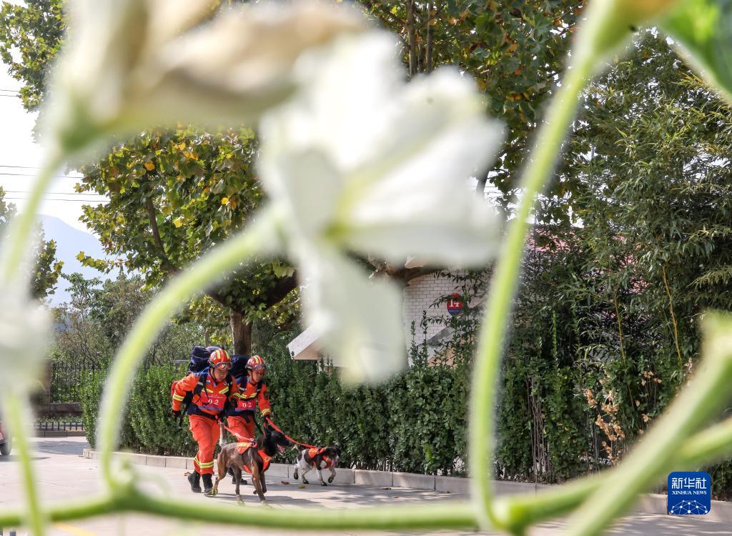 10月14日,參賽訓導員和搜救犬前往廢墟搜救主場地。