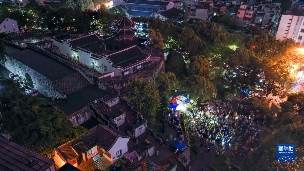 10月13日拍攝的貴陽市文昌閣路邊音樂會現場(無人機照片)。