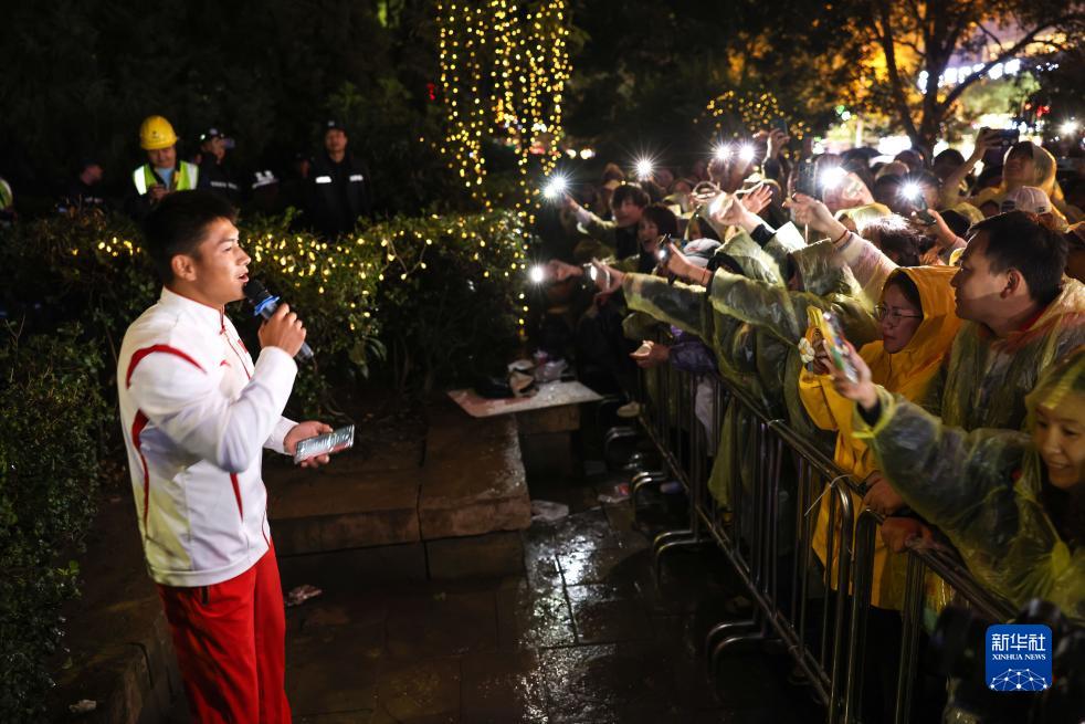 10月13日,剛剛在杭州亞運會龍舟項目上奪冠的楊海雷在貴陽市文昌閣路邊音樂會現場演唱。
