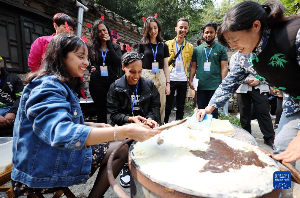 當日,來自俄羅斯、巴基斯坦、摩洛哥、法國等8個國家的20多名來華留學生走進山東省臨沂市沂南縣竹泉村,體驗活字印刷、草編技藝、烙煎餅、做香囊等傳統手工和非遺項目,零距離感受中國鄉村文化魅力。