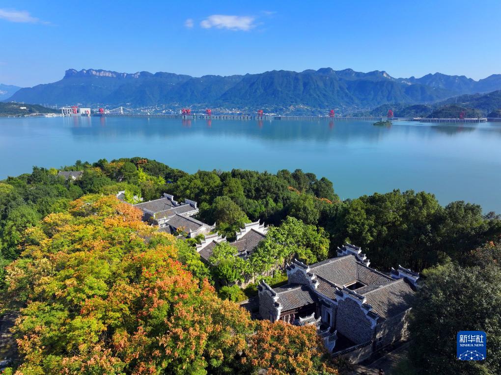 10月14日拍攝的湖北省秭歸縣屈原故里文化旅游區秋色(無人機照片)。