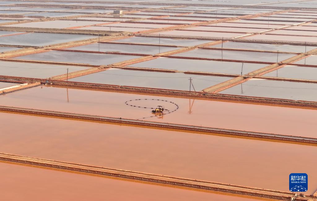近日,河北省灤南縣鹽業生產企業,搶抓晴好天氣收獲秋鹽,鹽池內呈現出一派忙碌景象。據介紹,該縣鹽田面積達15000畝,年產原鹽達5萬多噸。