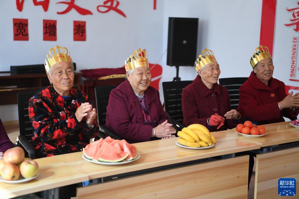 10月14日,居住在河北省康??h土城子鎮互助幸福院的老人們在過集體生日。