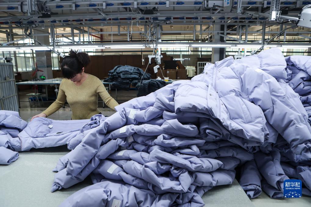 10月15日,河南省商丘市睢陽高新區東霞制衣有限公司工人趕制羽絨服訂單。