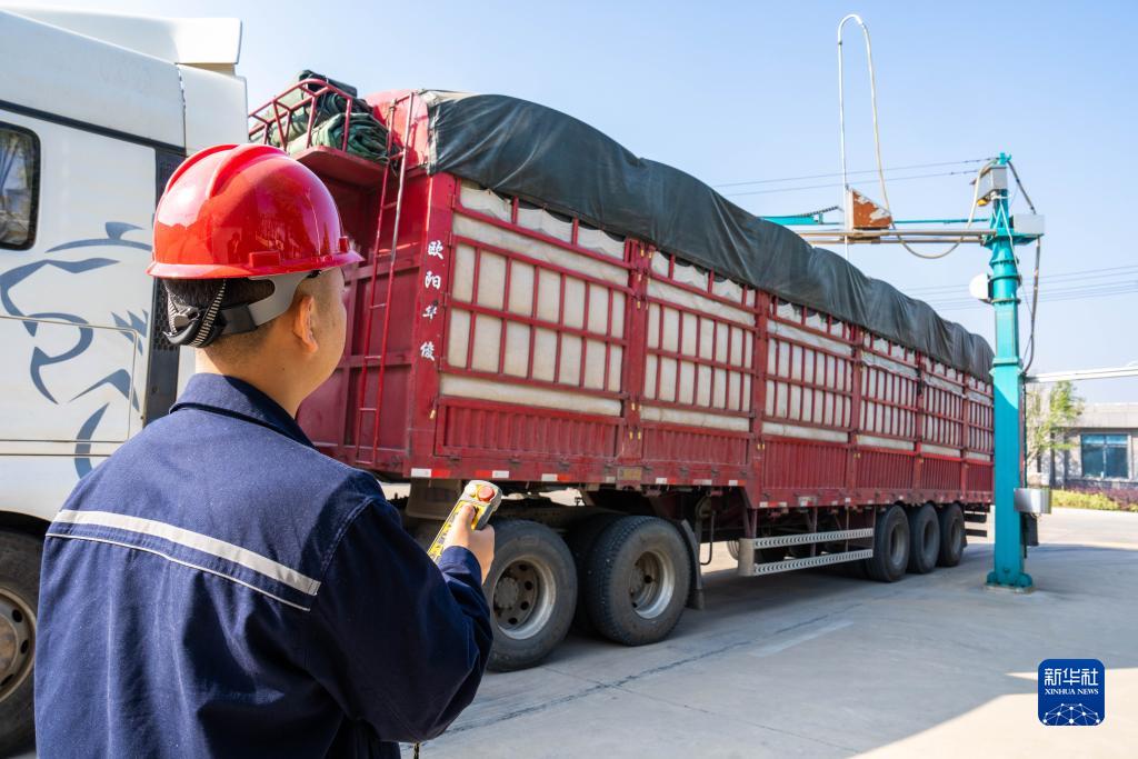 金秋時節,稻谷飄香。近期,湖南省益陽市南縣42萬畝中稻收割已臨近尾聲,在南縣南洲橋國家糧食儲備中心,一輛輛滿載秋糧的貨車忙著稱重、卸貨。據了解,湖南南縣南洲橋國家糧食儲備中心占地3.4萬平方米,各類糧倉容量達2.5萬噸。