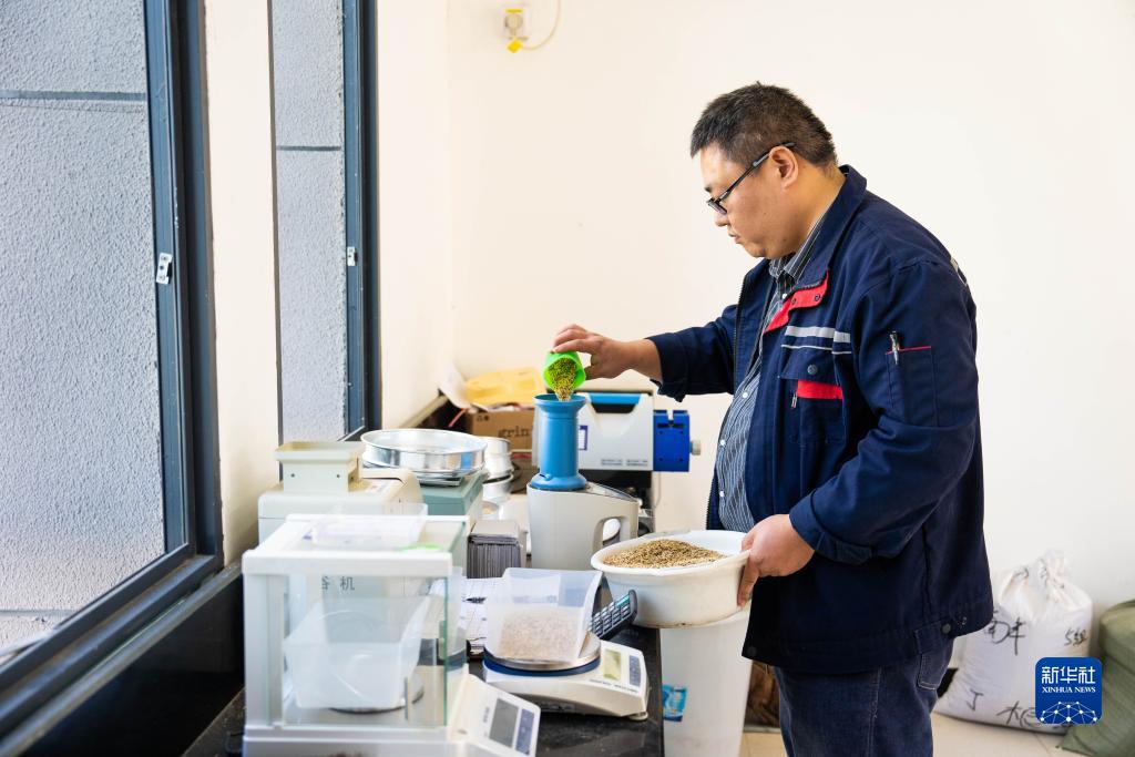 10月15日,在南縣南洲橋國家糧食儲備中心,工作人員在檢測入庫糧食的水分含量。
