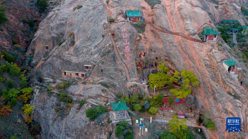 金秋時節,位于寧夏固原市原州區的須彌山石窟景區秋意漸濃,風景如畫。