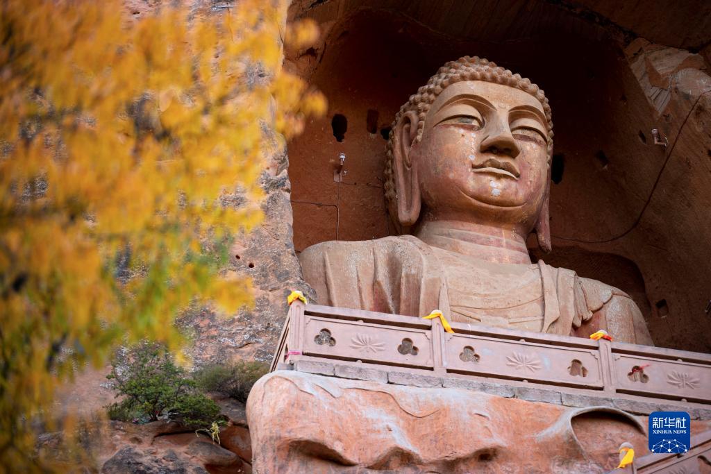 金秋時節,位于寧夏固原市原州區的須彌山石窟景區秋意漸濃,風景如畫。