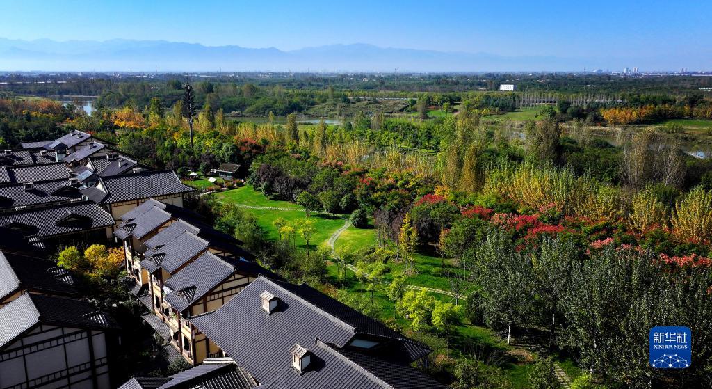 金秋時節,陜西西咸新區灃河兩岸秋意漸濃。暖陽下,斑斕的樹木,碧藍的晴空,巍峨的秦嶺,共同繪就出一幅絢爛秋景。