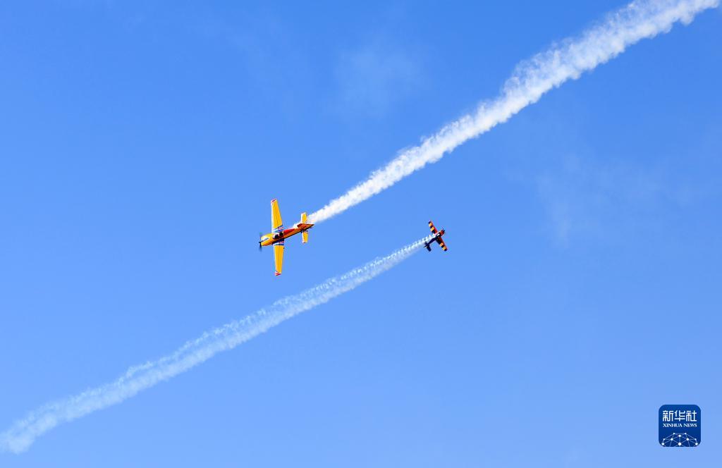 10月15日,飛手在大賽開幕式上操控無人機進行特技飛行表演。