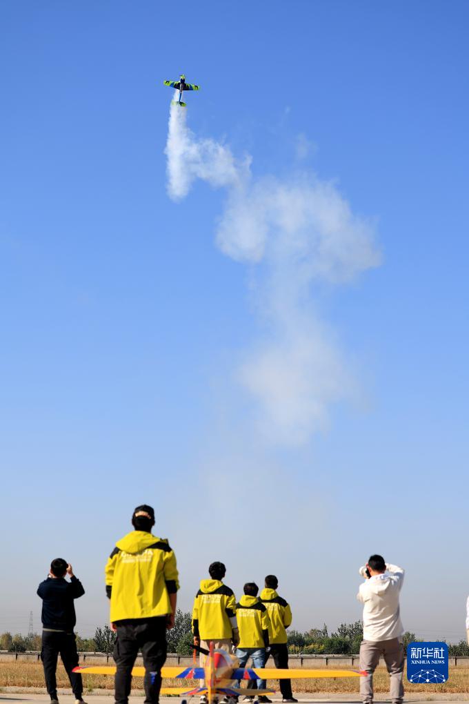 10月15日,飛手在大賽開幕式上操控無人機進行特技飛行表演。