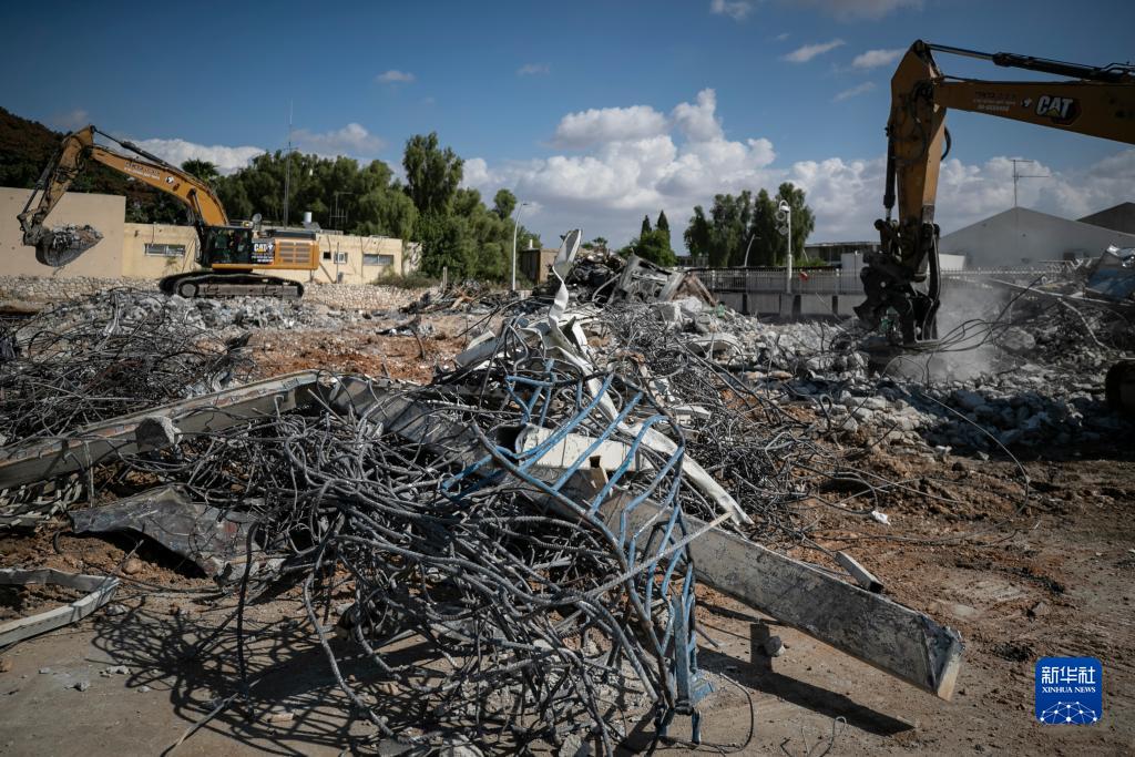10月15日,工作人員清理沖突中被毀的斯代羅特警察局。