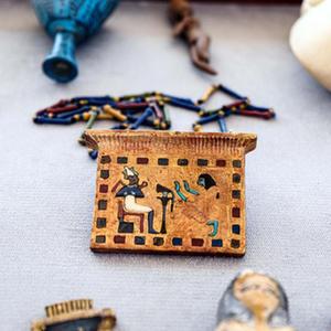 這是10月15日在埃及明亞省考古現場拍攝的出土文物。